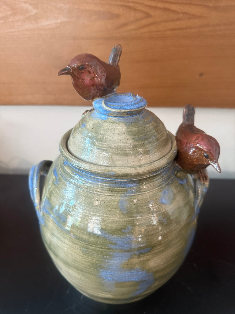 Clay " Winter Birdsong" Aculpture Jar By Nathen Peck