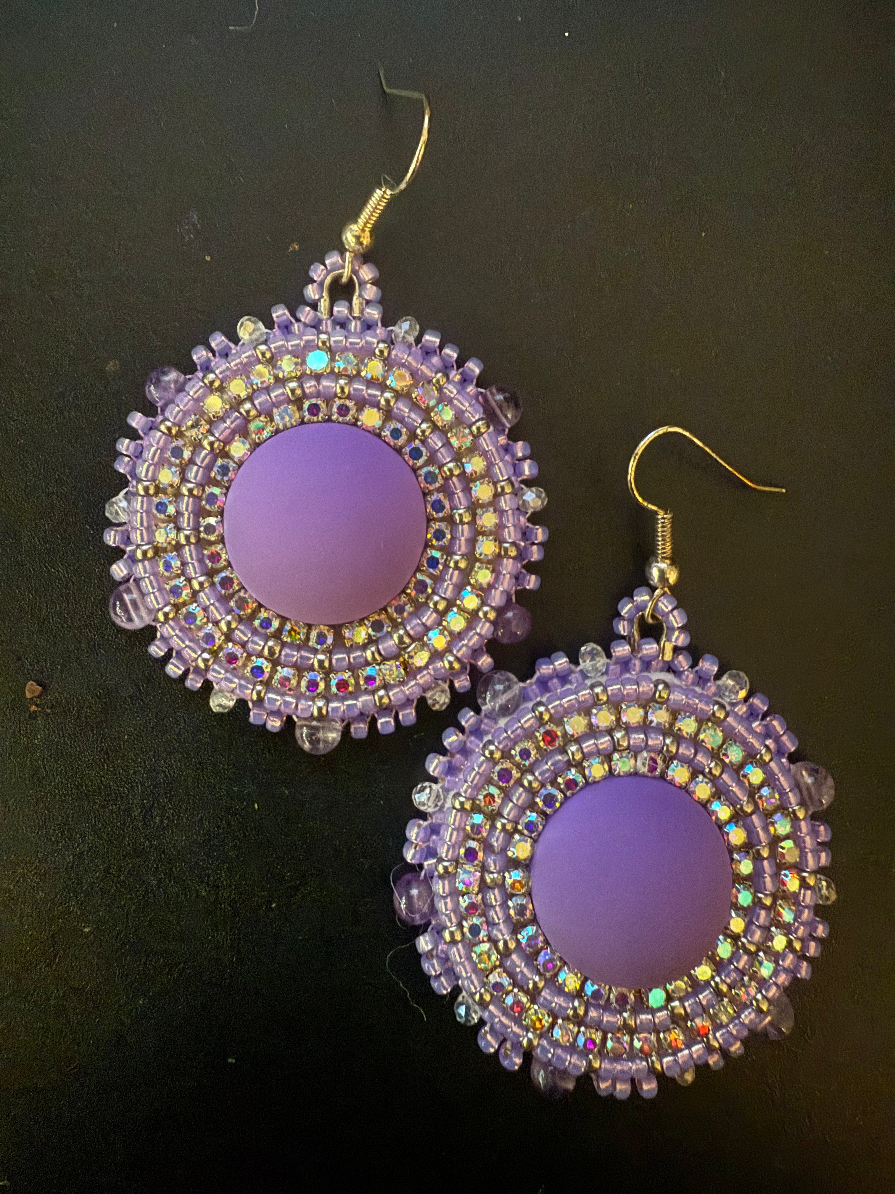Lavender Round Bead & Crystal Earrings By Leanne Edenshaw