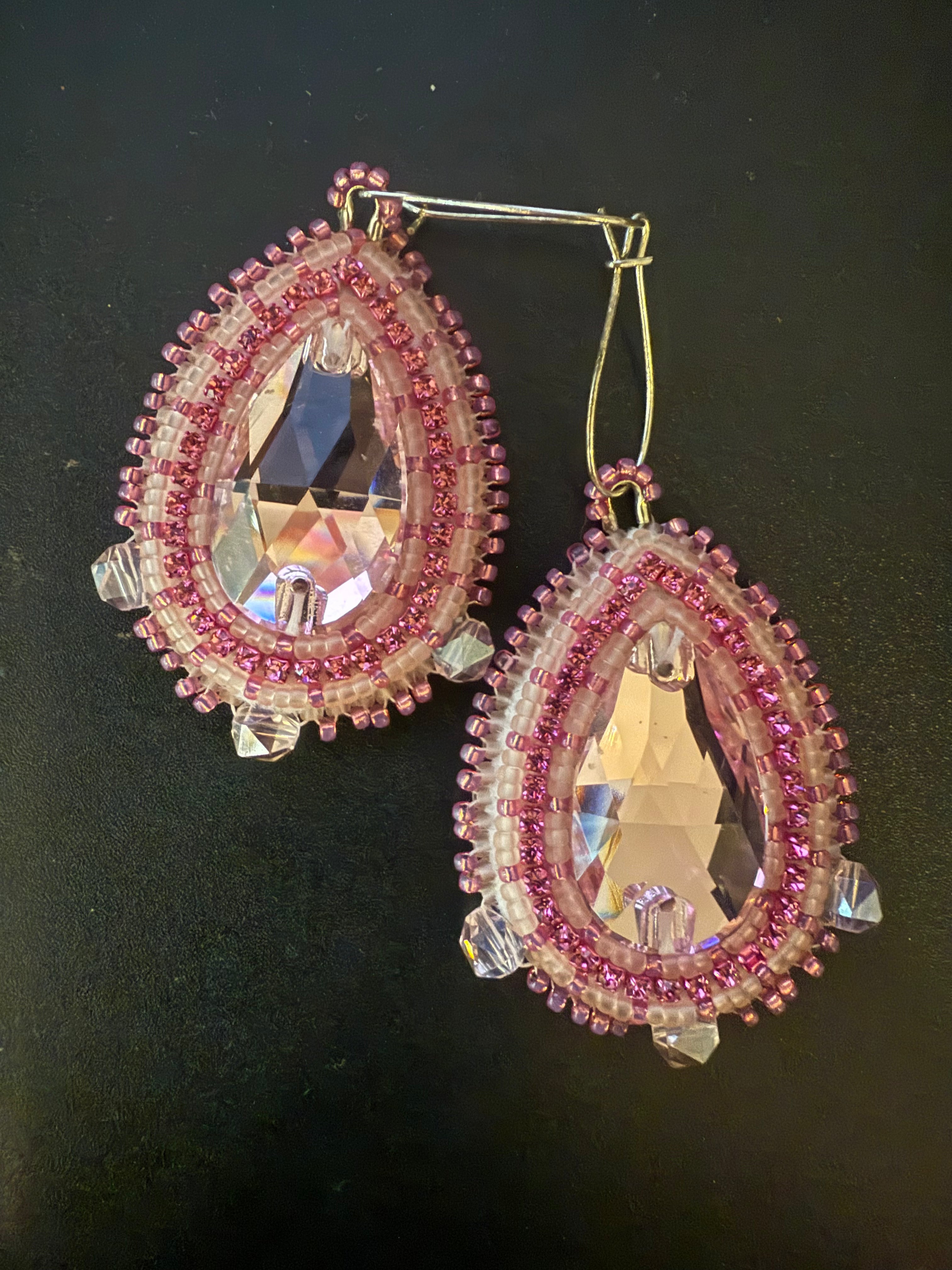 Pink Teardrop Crystal and Bead Earrings By Leanne Edenshaw