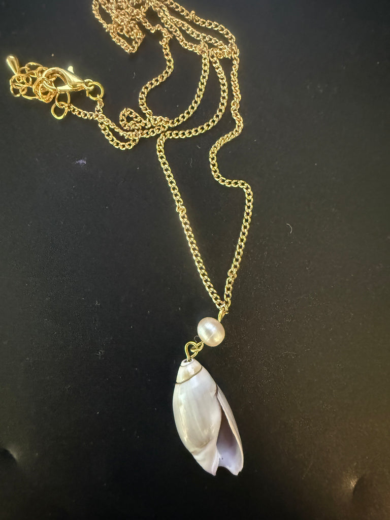 Purple Olive Shell & Pearl Pendant with 20" Chains By Shyla Cross