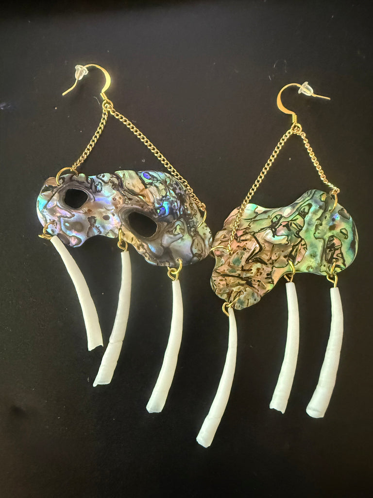 Abalone and Dentalium Chandelier Earrings By Shyla Cross