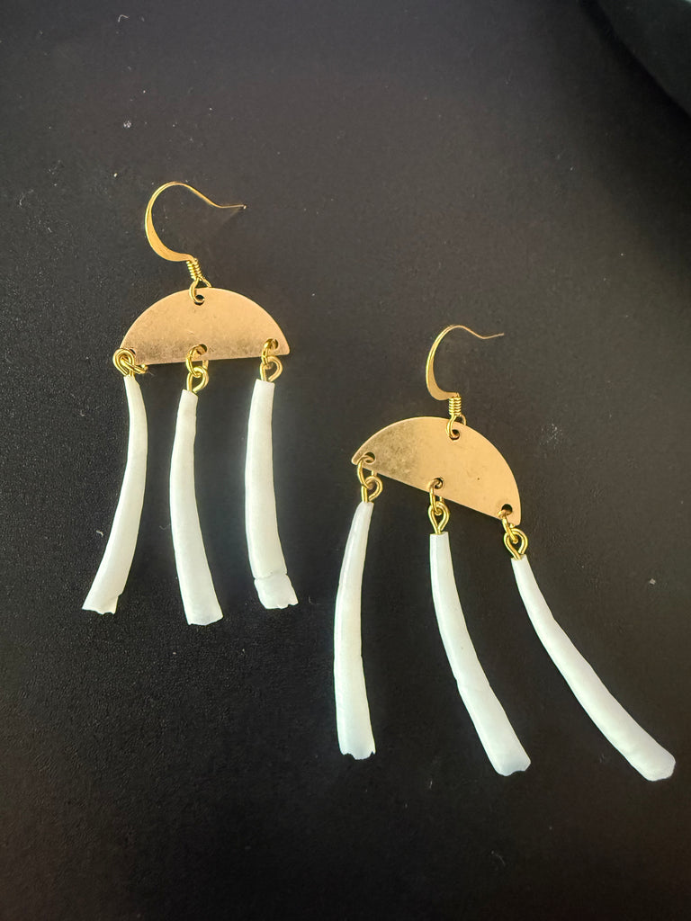 Dentalium & Half Moon Hanging Earrings By Shyla Cross