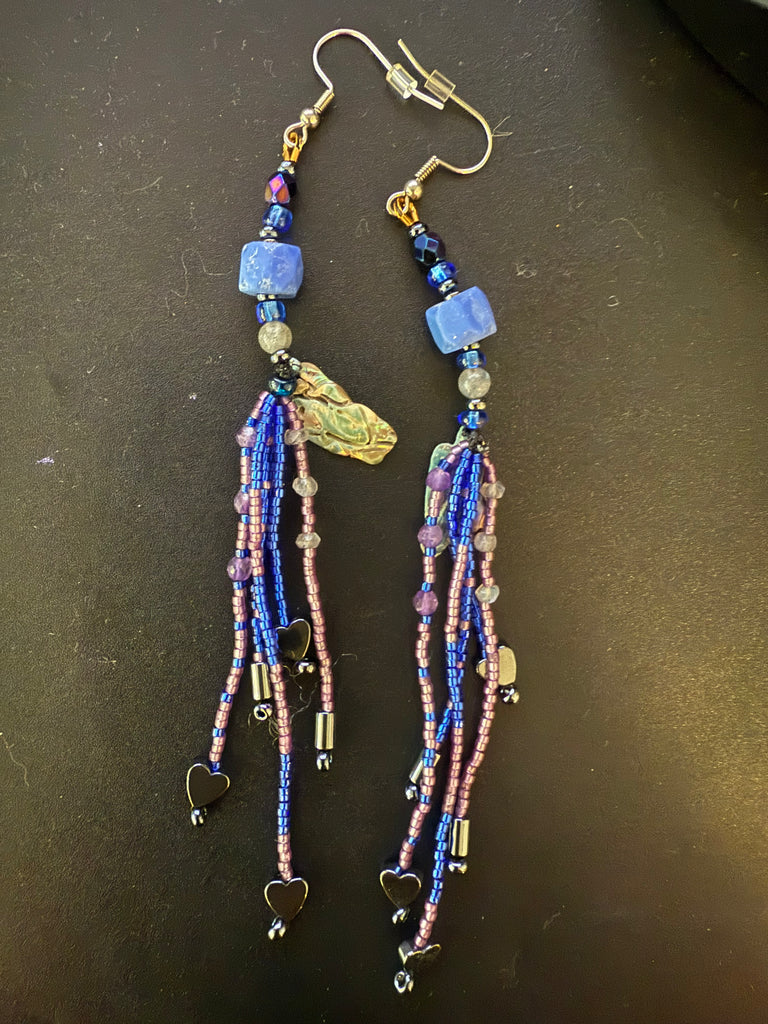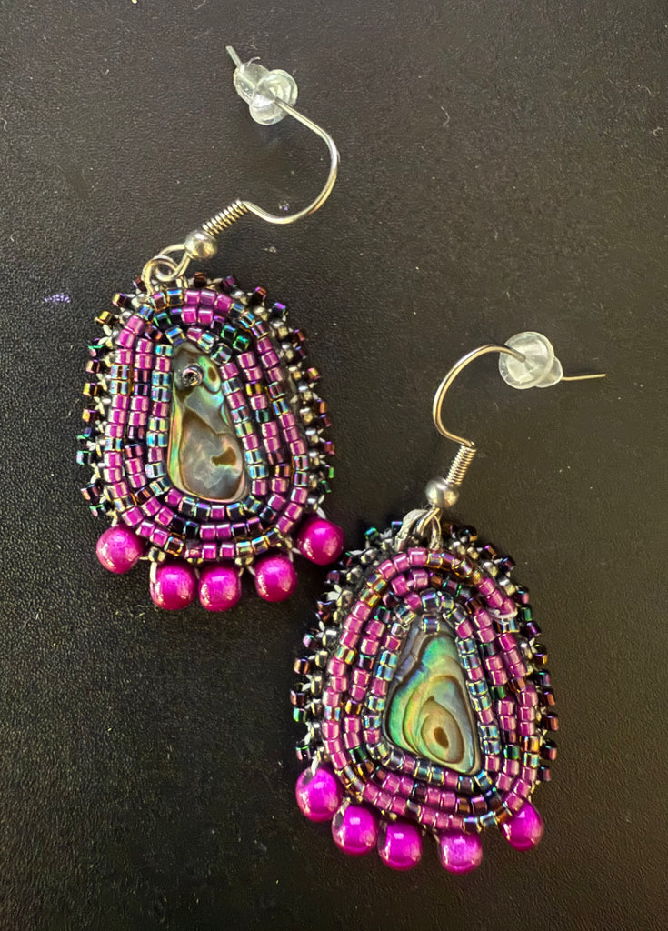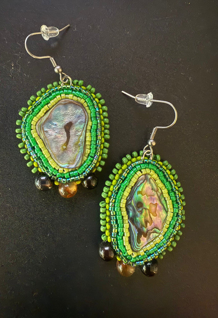 Beaded Hanging Earrings With Abalone By Kristy Crawford
