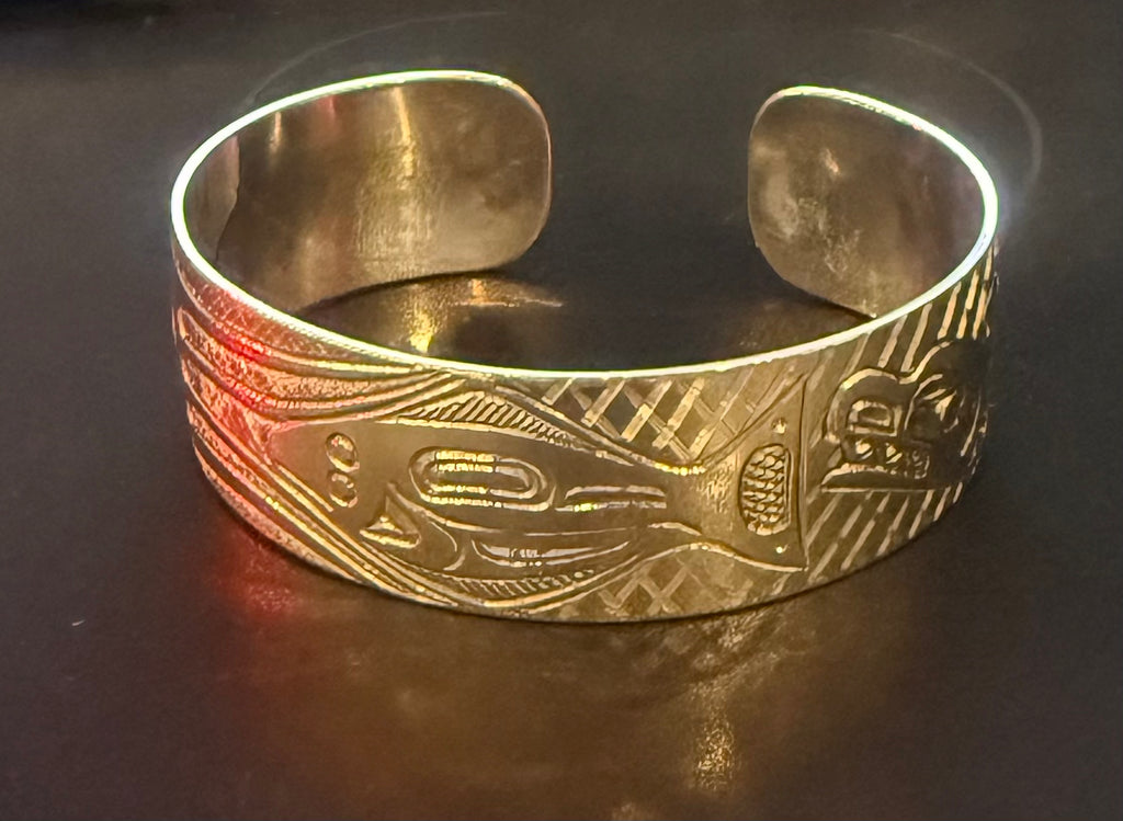 Born to the Eagle Clan of Haida. He is the son of renowned Gordon Cross, from whom he learned all aspects of Haida carving. From his cousin Nelson Cross he learned to work with metal and, since 1983 has worked in both silver and gold. His jewellery shows his talent and skill and the individuality of his style.