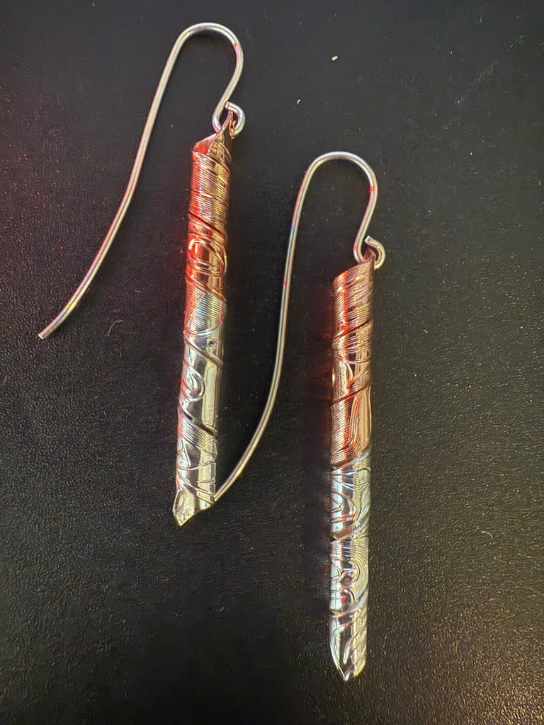 Slender 4cm Copper and Silver Spiral Earrings By Greg Williama