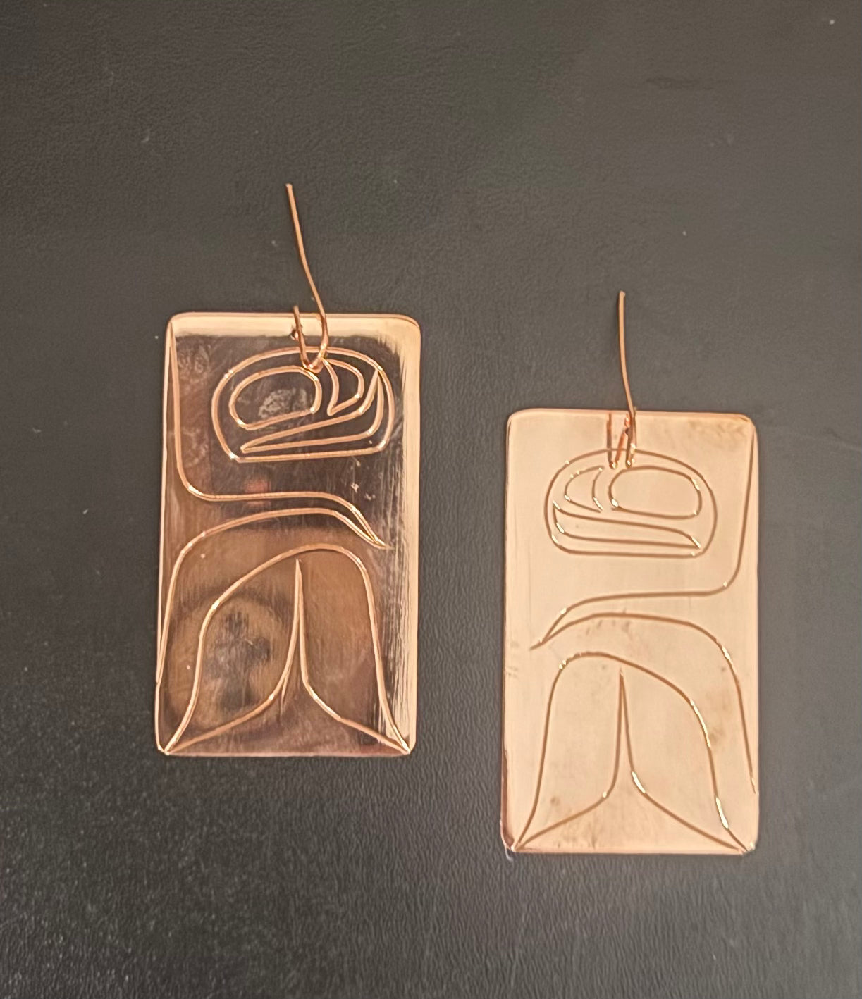 Copper Rectangular Trout Head Earrings By Aay Aay Gidins