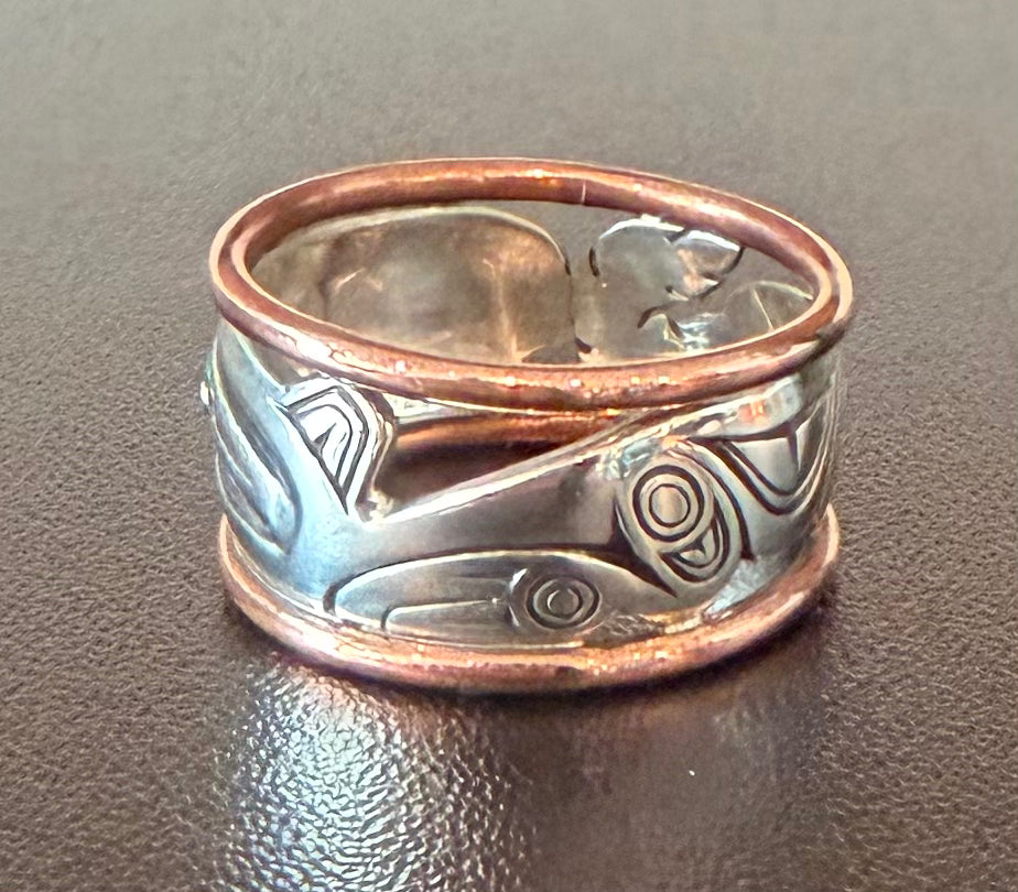 Norman Bentley was born in 1968, in Skidegate located on the island of Haida Gwaii along the Northern Coast of British Columbia. He is a member of the Haida Nation, and takes the Eagle, seen as a symbol of both power and prestige as his predominant family crest. At the age of twelve, Norman began to carve small pieces from wood. In 1988, at the age of twenty, Norman began his jewelry training at the prestigious, Tony Cavelti Jewelry Apprenticeship Program utilizing precious and semi-precious metals.Nor
