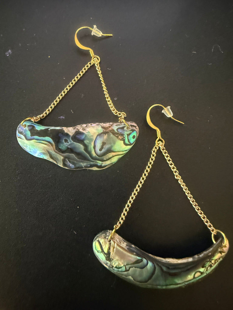 Gold Chain Abalone hanging Earring By Shyla Cross