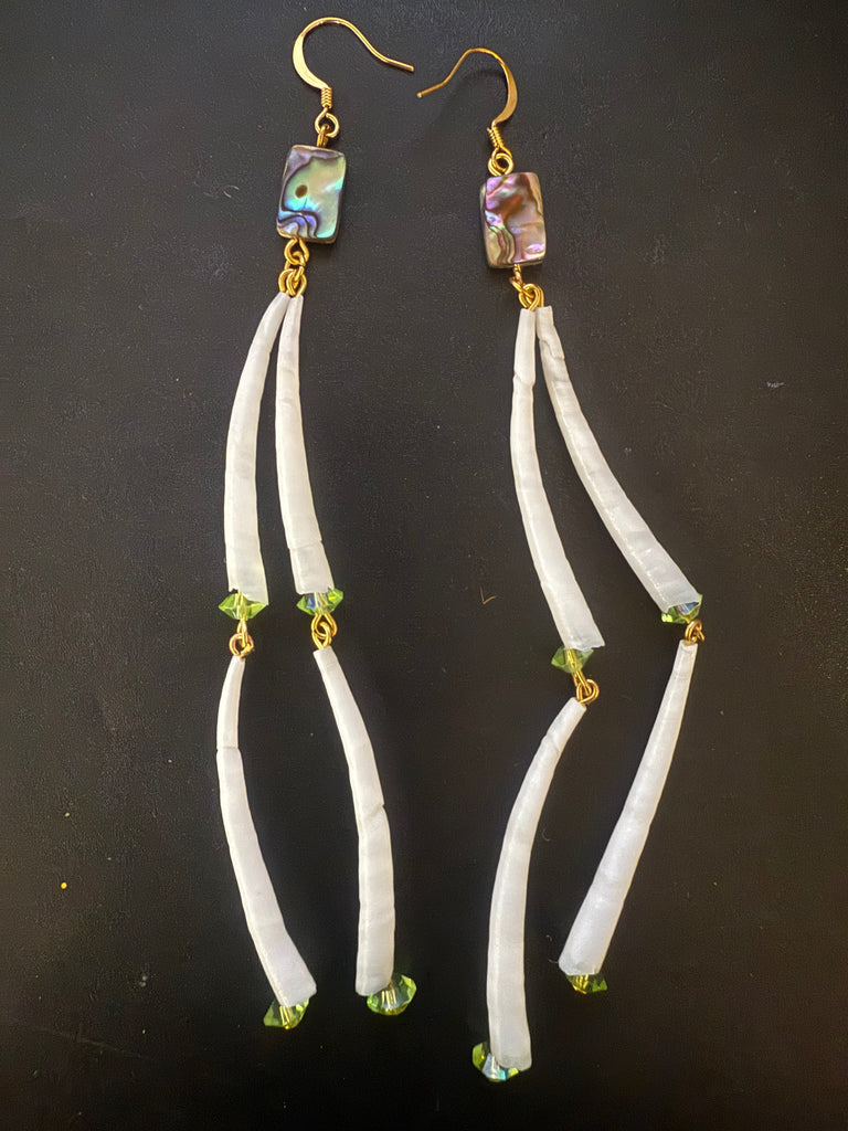 Abalone & Dentalium Hanging Earrings By Sgaas Sgwaansing Shyla Cross