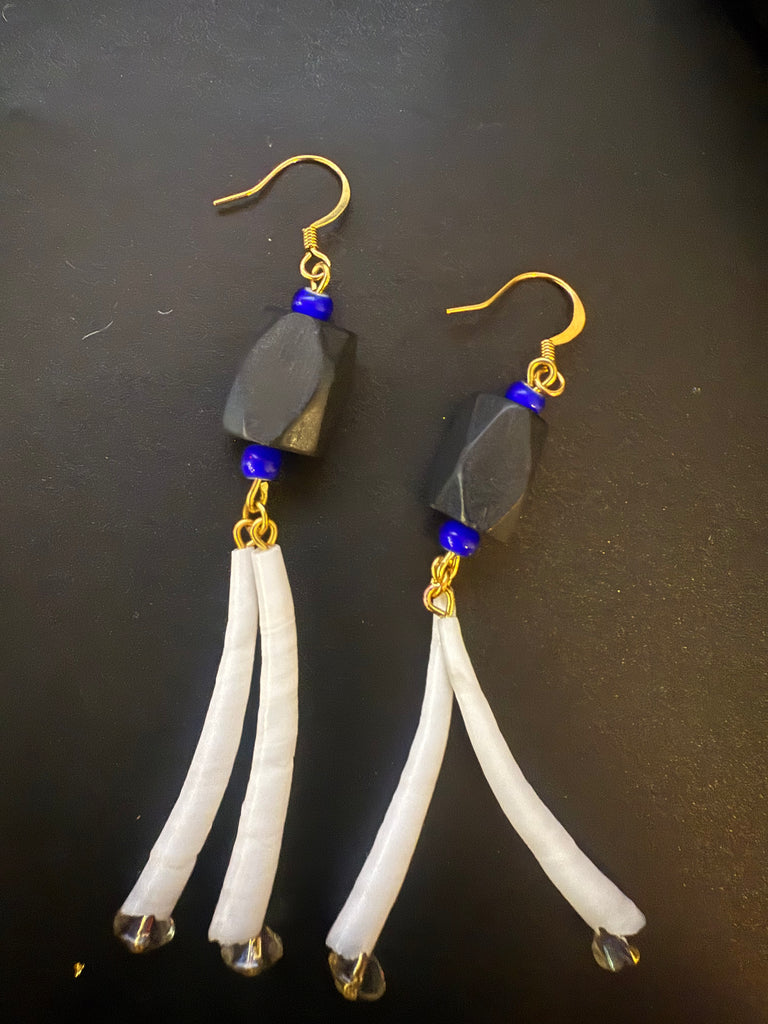 Abalone U , Black Onyx & Dentallium Hanging Earrings By Sgaas Sgwaansing Shyla Cross