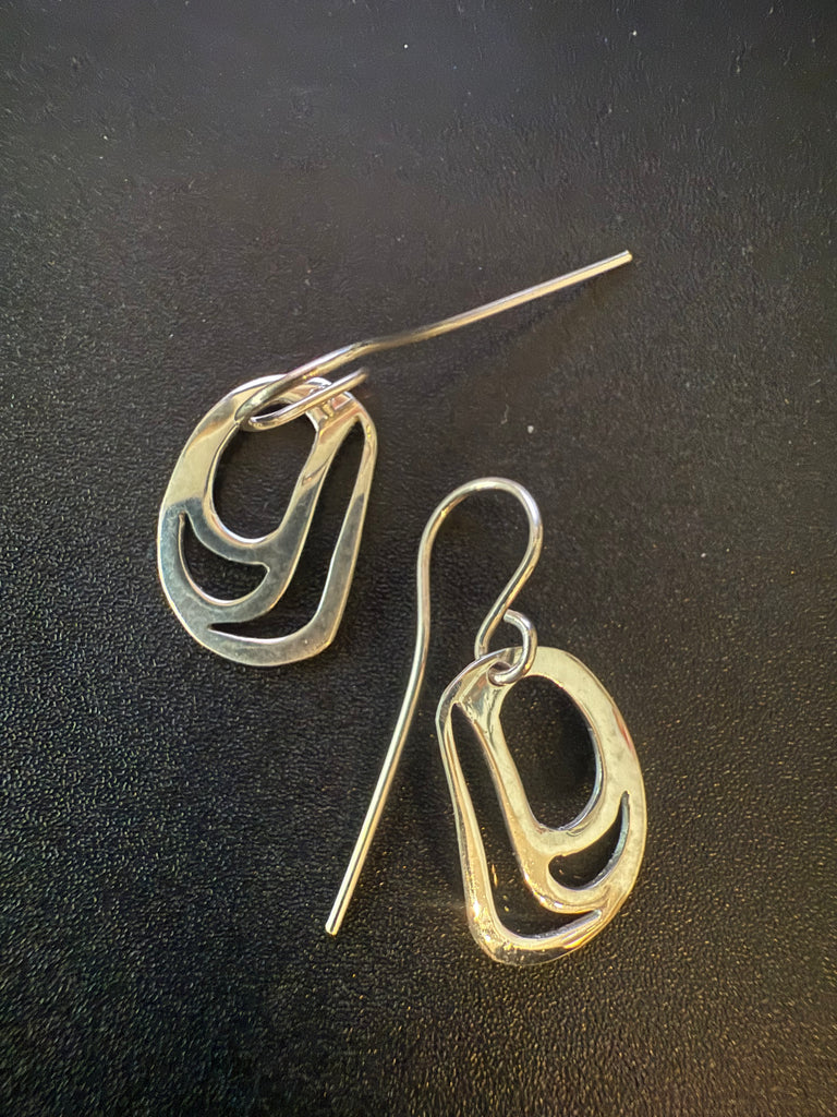 Sterling Silver Cut-Out Trout Head Earrings By Aay Aay Gidins