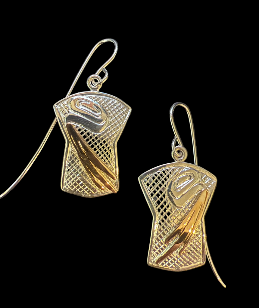 Sterling Silver Shield Earrings With 14K Gold Frog Legs By Walter Davidson