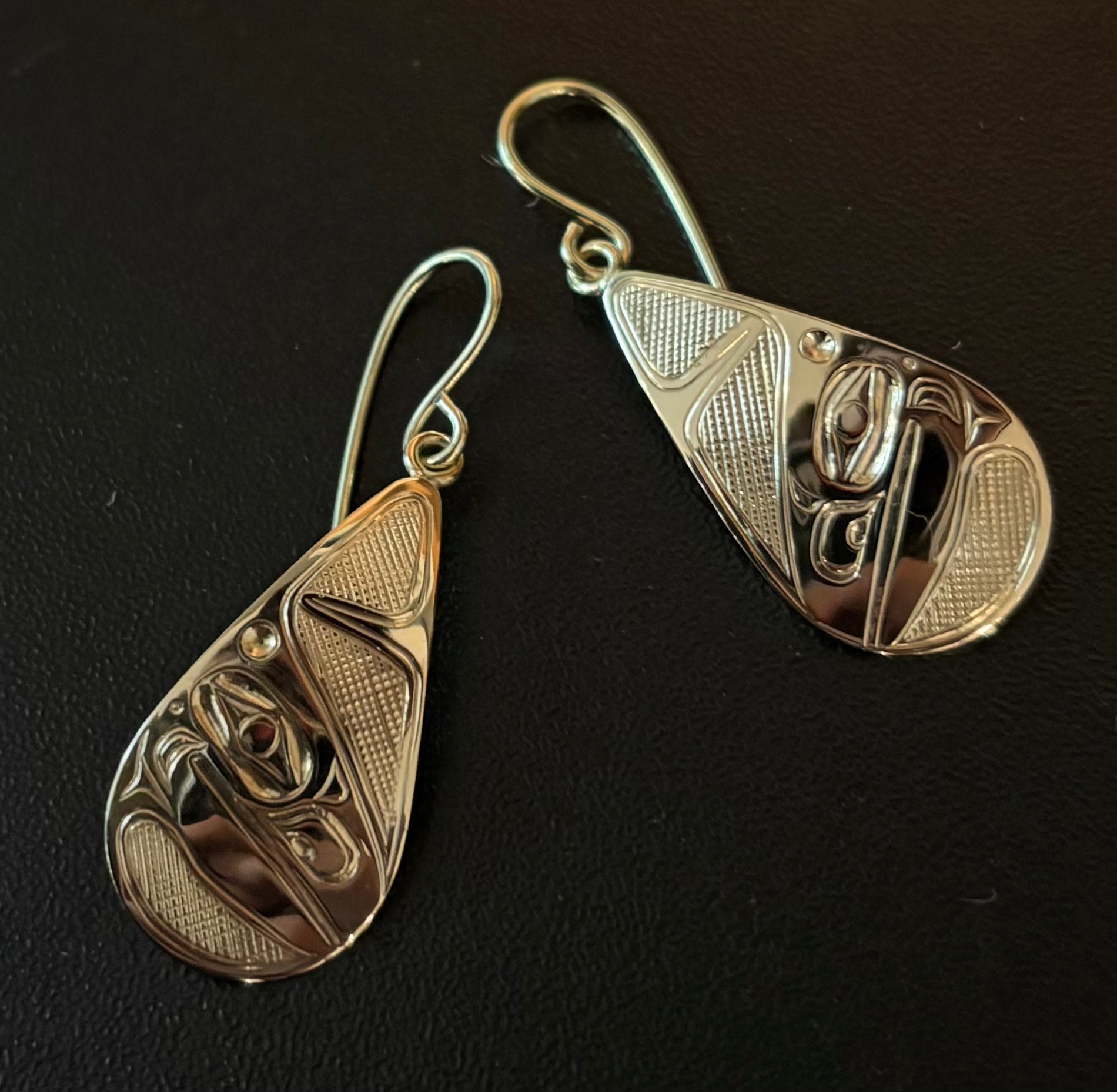 Haida artist David Jones was born in Masset, Haida Gwaii in 1991 and grew up in Hydaburg, Alaska. His parents are Norman and Sophina Edenshaw (Jones). Paternal Grandparents are Kaigani Haidas, Gerald Edenshaw and Jean Bland. Maternal, Grandparents from Haida Gwaii are Marina and David jones Sr. David’s clan is, Naikun Qegawai. David first became interested in Haida art when he was nine years old. He spent his time studying books about Haida art and through this, learned formline by mimicking the designs in these books. He later went on to develop his own style of artwork. In 2013, David apprenticed for Haida master carver, Reggie Davidson for a period of time working on wood projects down at Reggie’s carving shop. In 2014, he started carving on precious metals such as gold, sterling silver, and copper with Haida master carver, Derek white. In the summer of 2021 David started as an apprentice for master carver Christian White at his carving shed in old Masset.