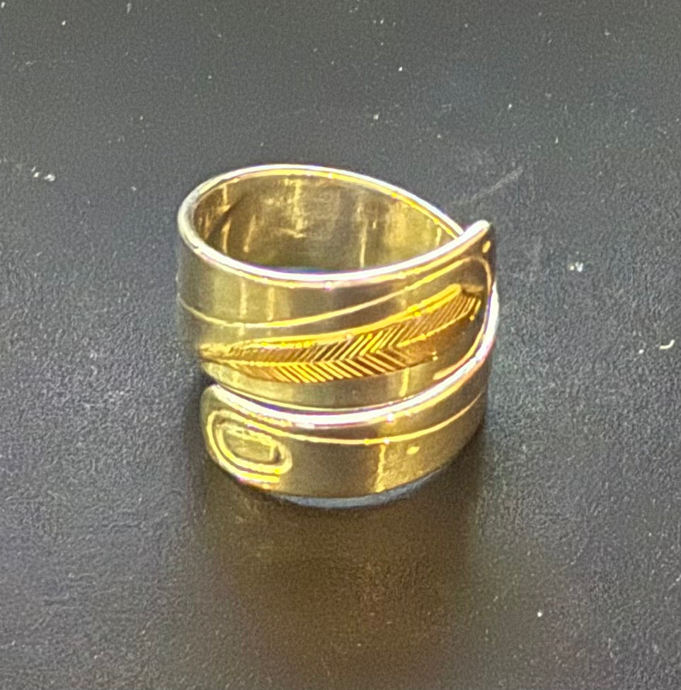 Silver Wrap Ring With Gold Feather Overlay By Walter Davidson.